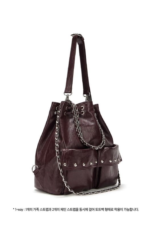 DEINET 5-WAY STUD POCKET MULTI BAG IN BURGUNDY