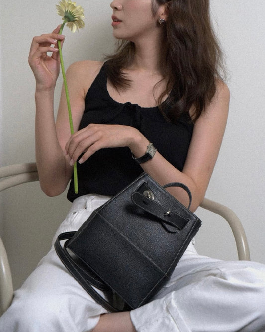 lotsyou Nostalgia Chubby Backpack - Leather Black