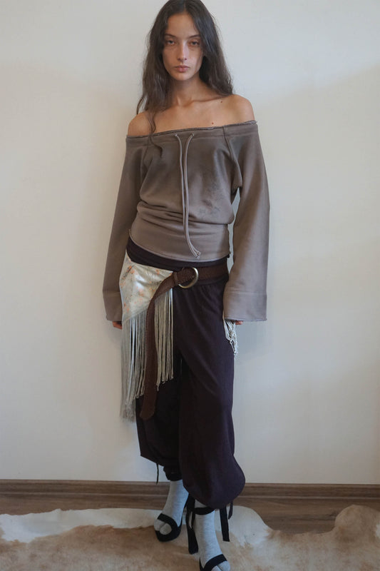 Sculptor Wide Bell Sleeve Sweatshirt Taupe Brown