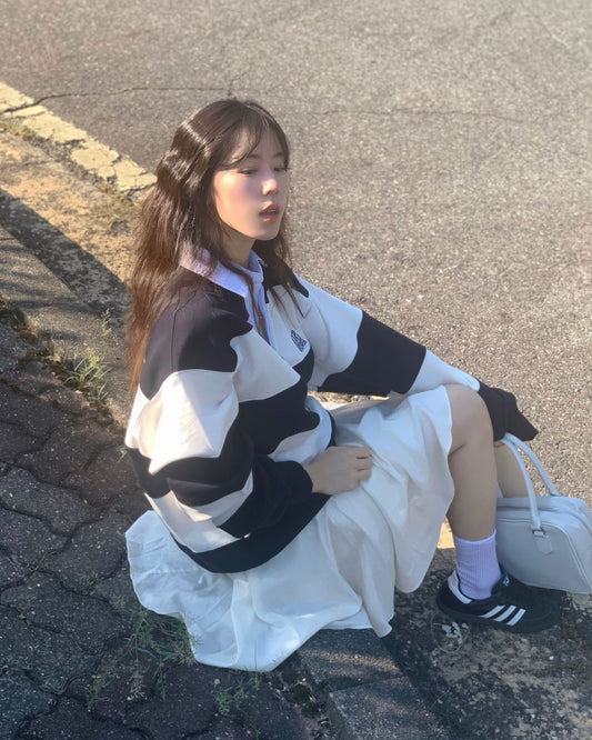 [TXT수빈同款🎀] Code:graphy CGP Small Square Logo Stripe Rugby Sweatshirt / Navy