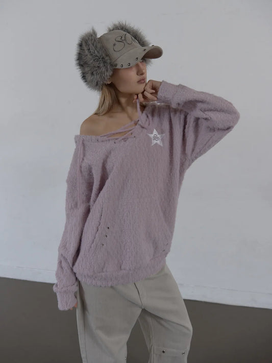SETUPEXE HAIRY V-NECK HOODIE / LILAC