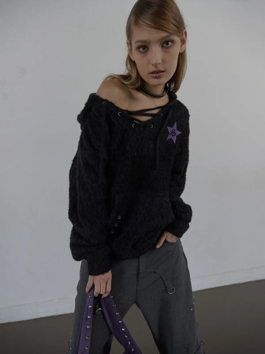 SETUPEXE HAIRY V-NECK HOODIE / BLACK