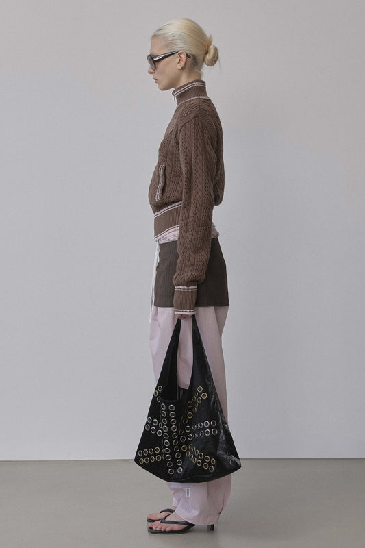 Sculptor Stud Metallic Hobo Bag Gun Metal