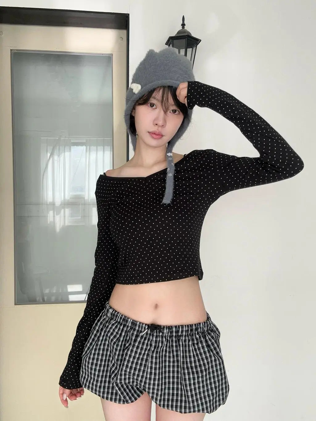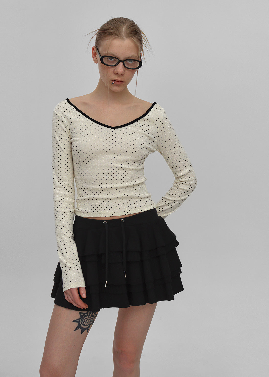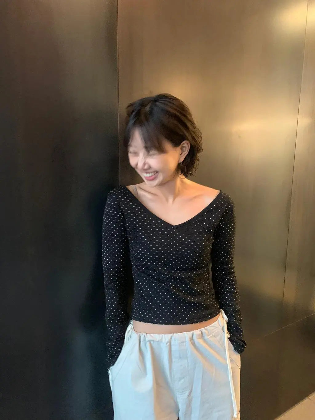 [้Ÿ“ๅœ‹่ฃฝ้€ ๐Ÿ‡ฐ๐Ÿ‡ท] BLACKUP Dot V-Neck Long Sleeve Tee / 2colors