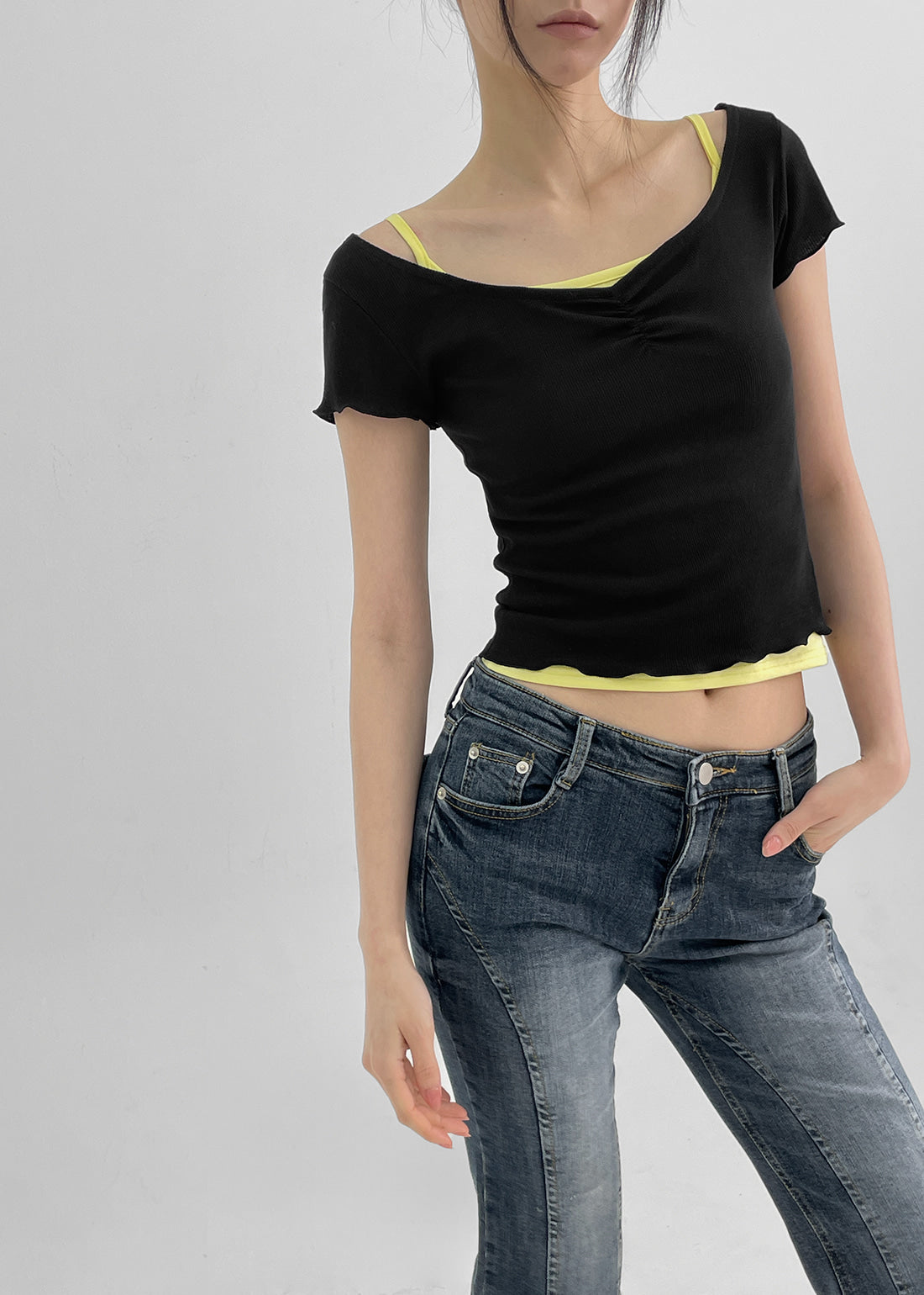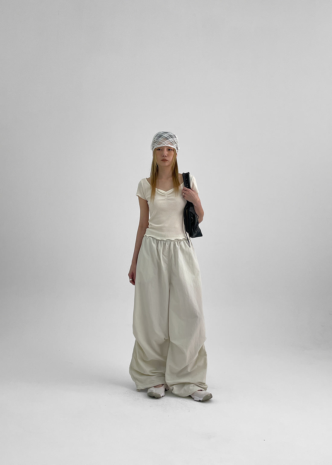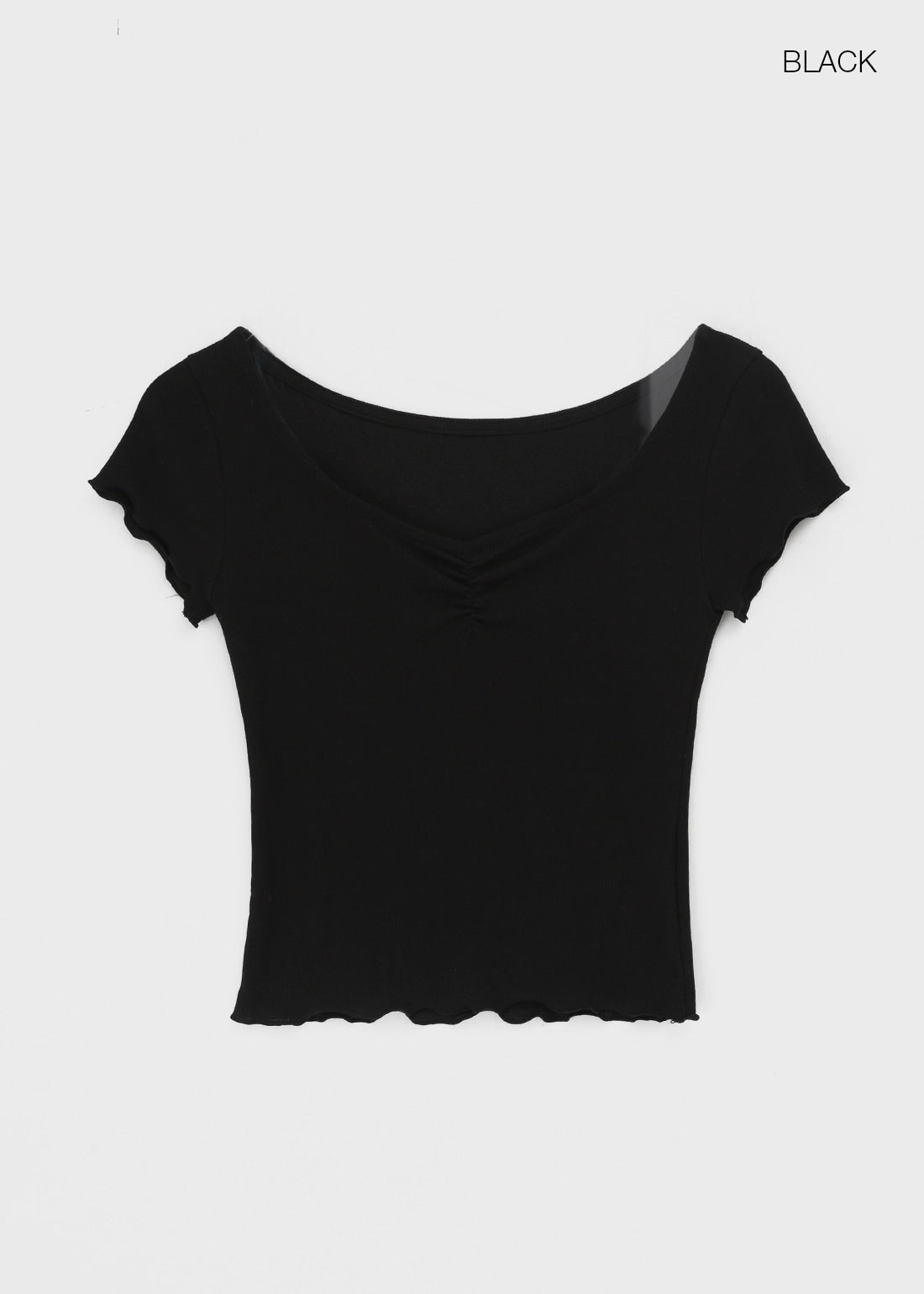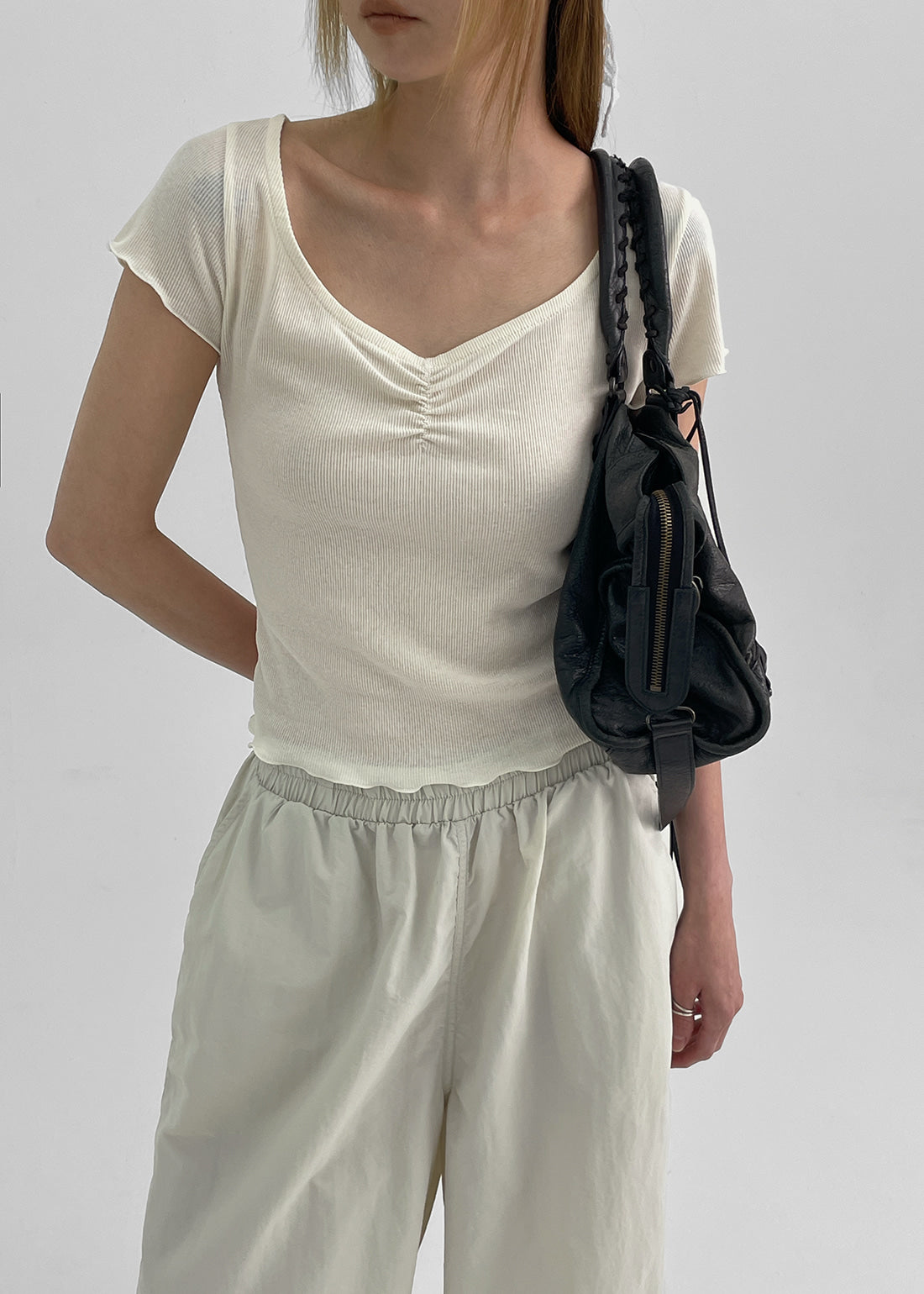 [้Ÿ“ๅœ‹่ฃฝ้€ ๐Ÿ‡ฐ๐Ÿ‡ท] Bellini Shirring V-neck Short Sleeve Tee / 3colors