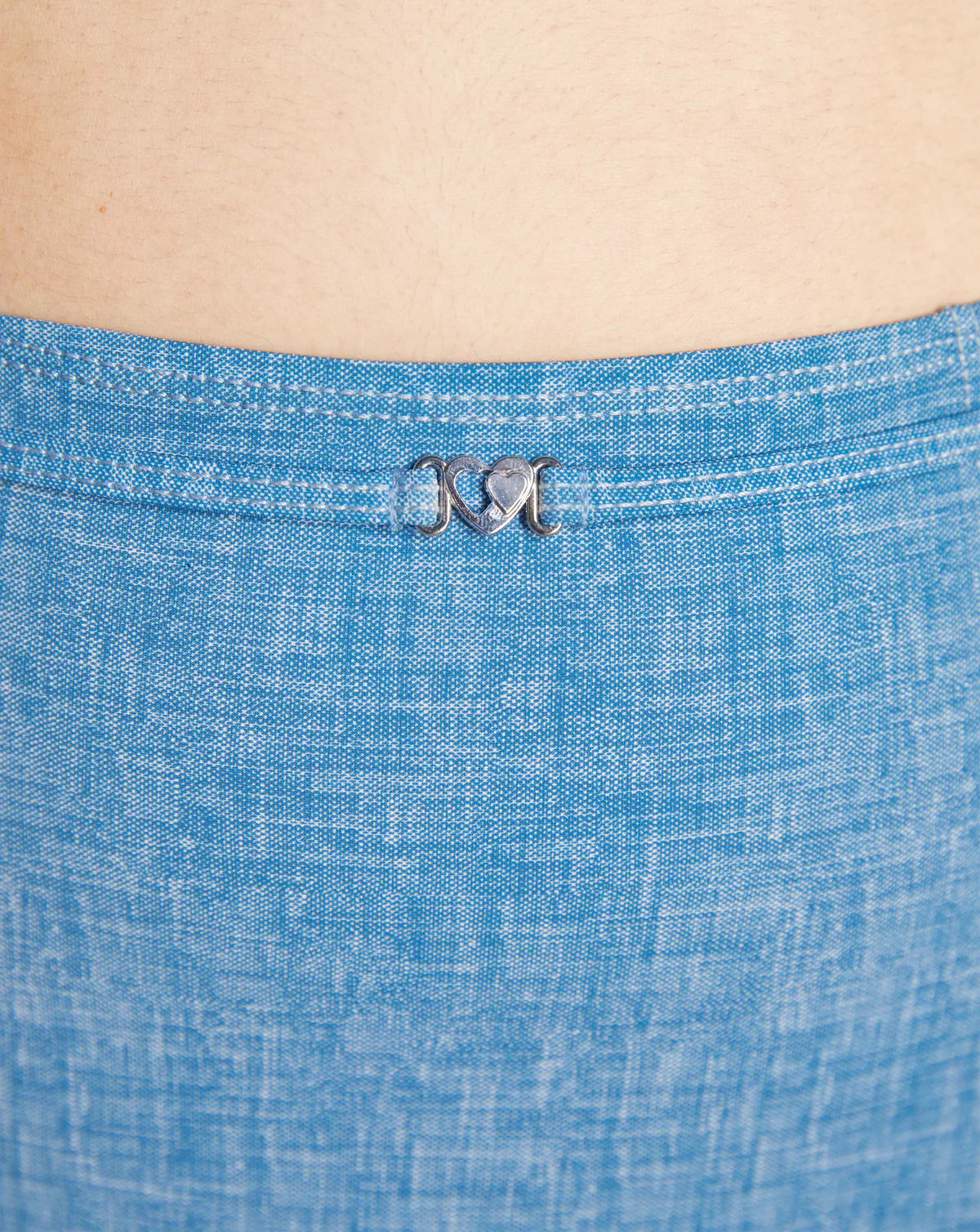 Bring denim vibes to swimwear with these high-waist, low-cut pants! Featuring a belt-through-eyelet detail with a sweet heart charm and jean-inspired stitching, they’re perfect to mix and match with the Maggie Bra or Halter Top for effortless cool.