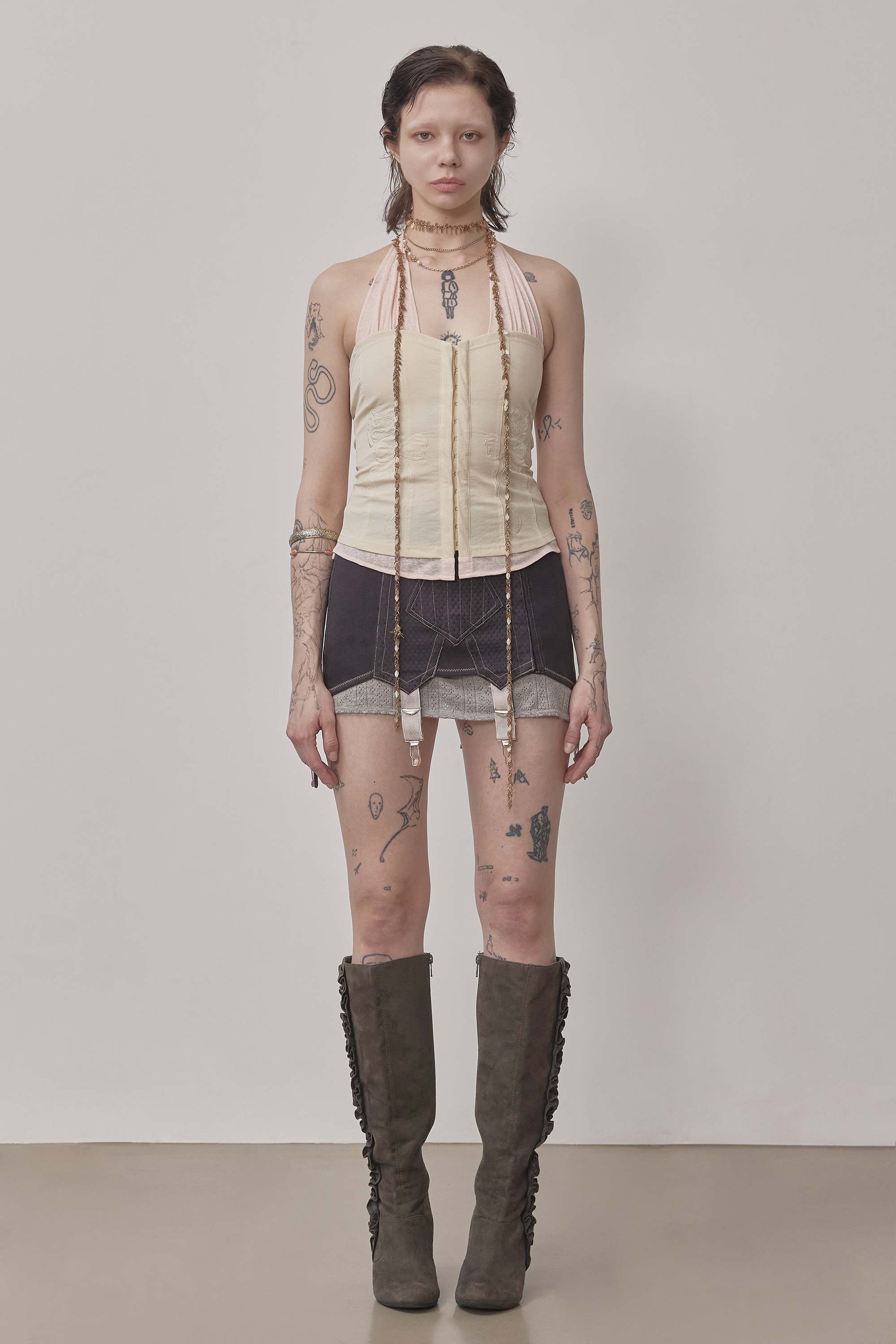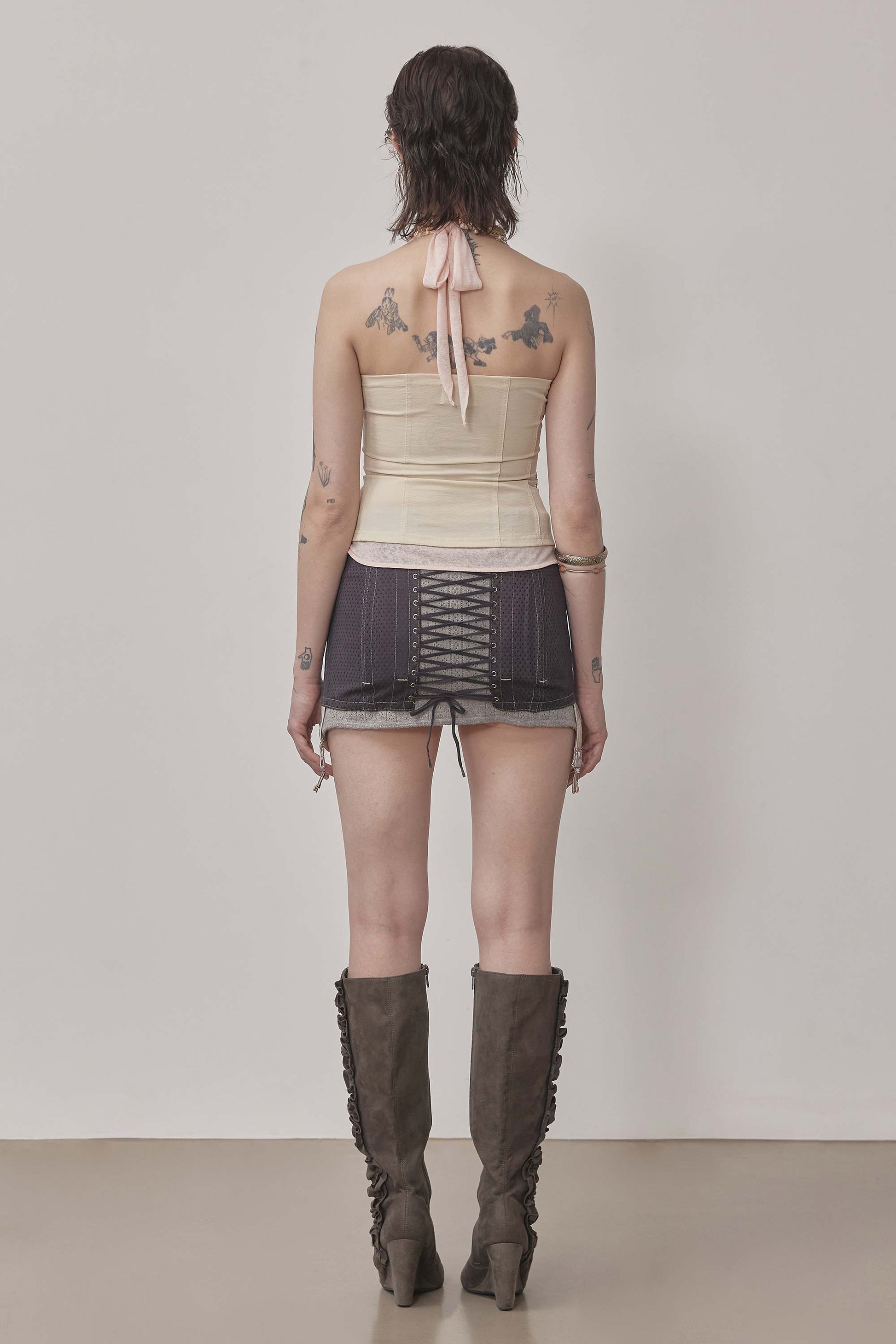 Farm Corset Halter Top Raw/Baby Pink