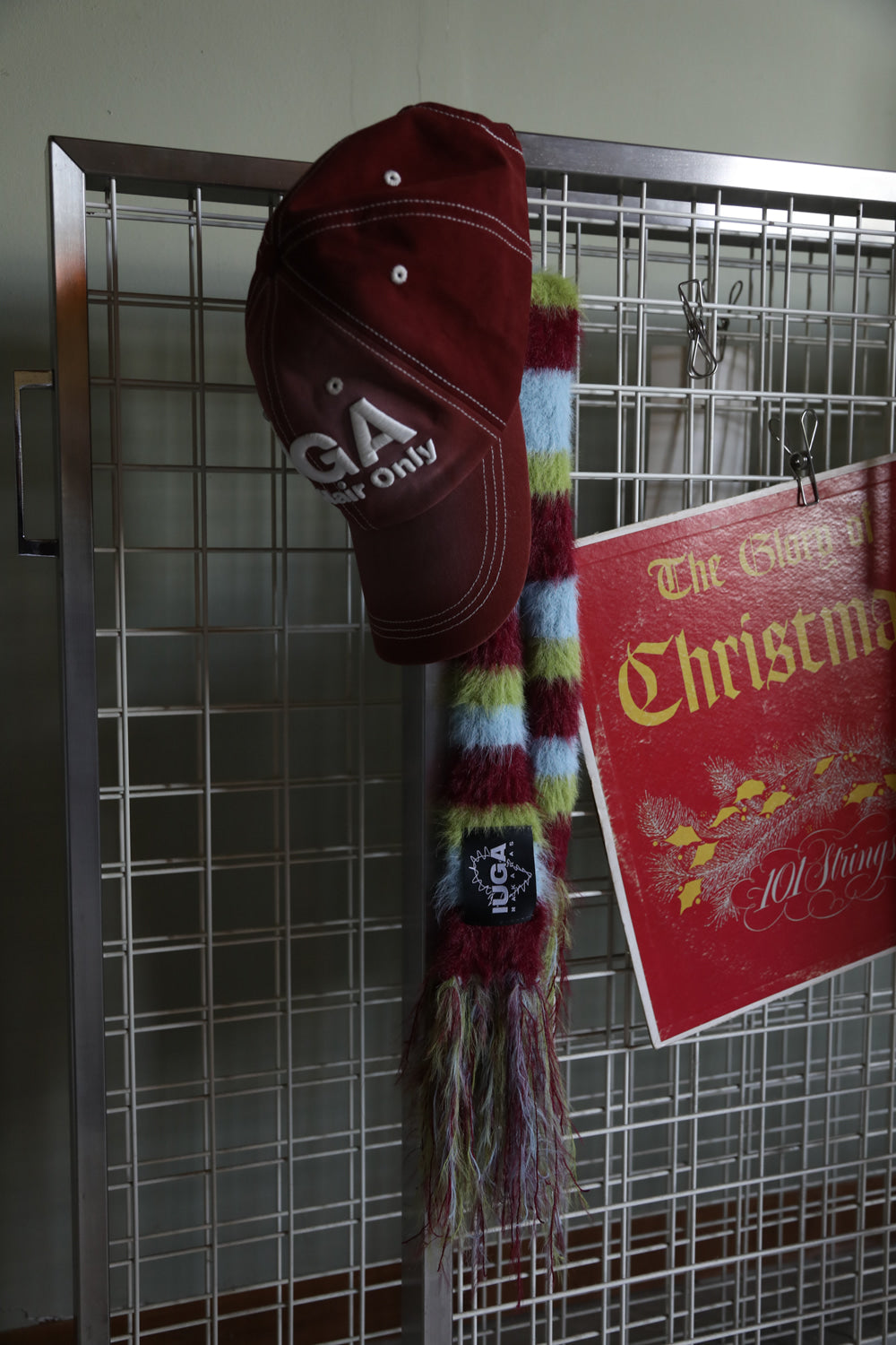 IUGA Striped Hairy Skinny Muffler (Burgundy)