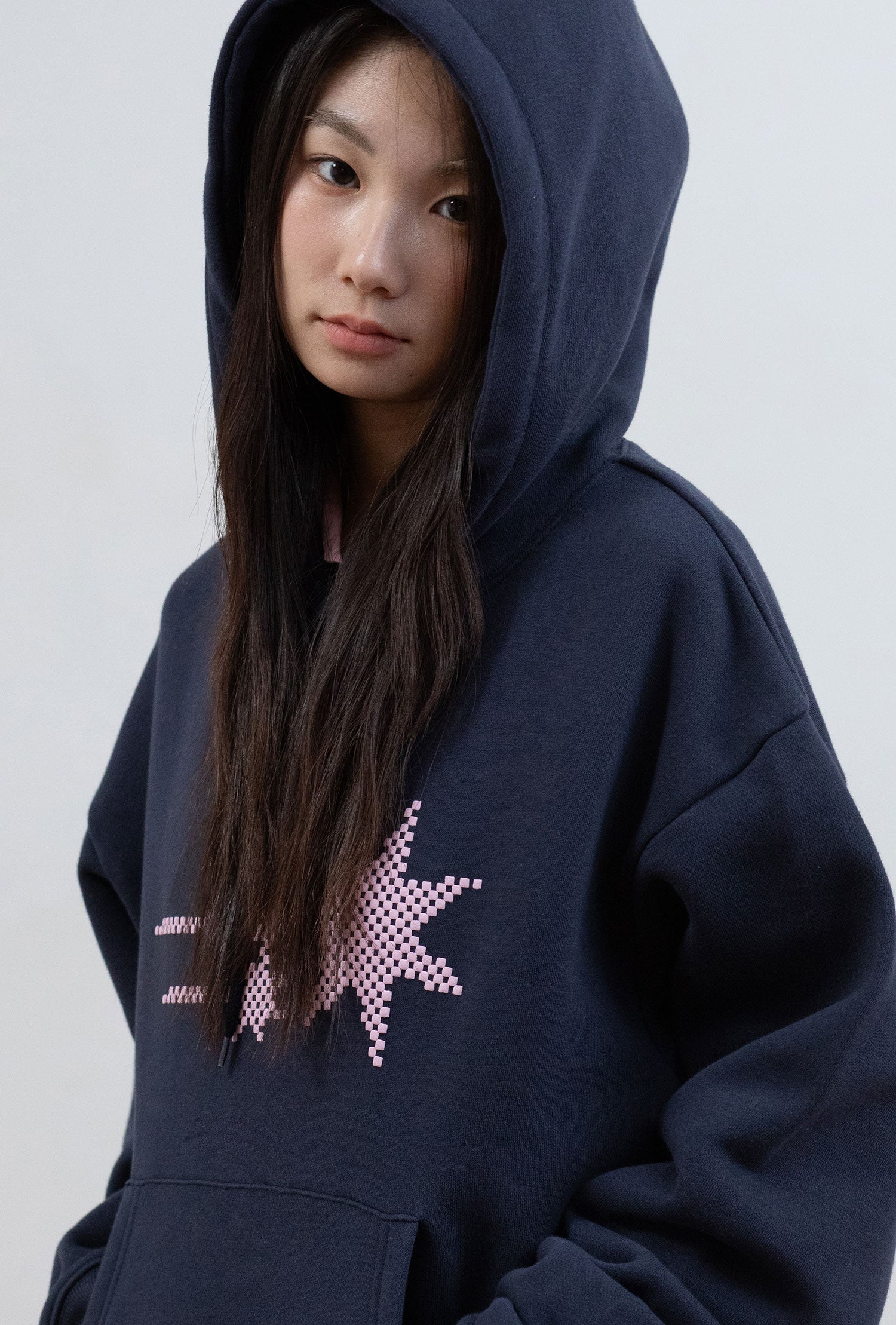 MOSAIC 3STAR CROP HOODIE [NAVY]