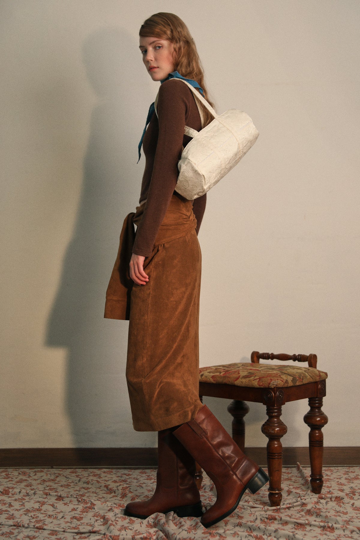 NANACREW MINI DUFFLE BAG - ROSE JACQUARD IVORY SATIN