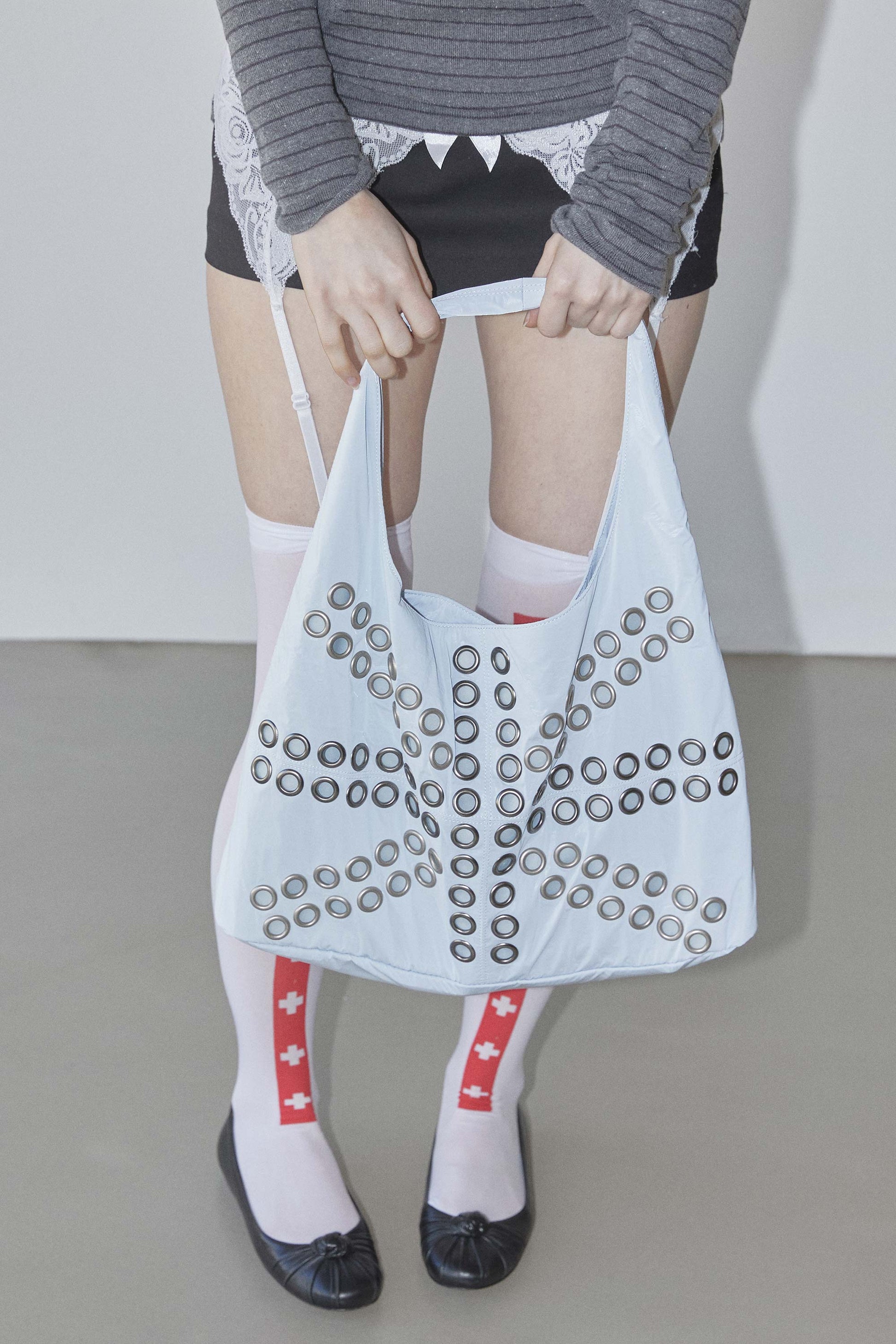 Sculptor Stud Metallic Hobo Bag Baby Blue