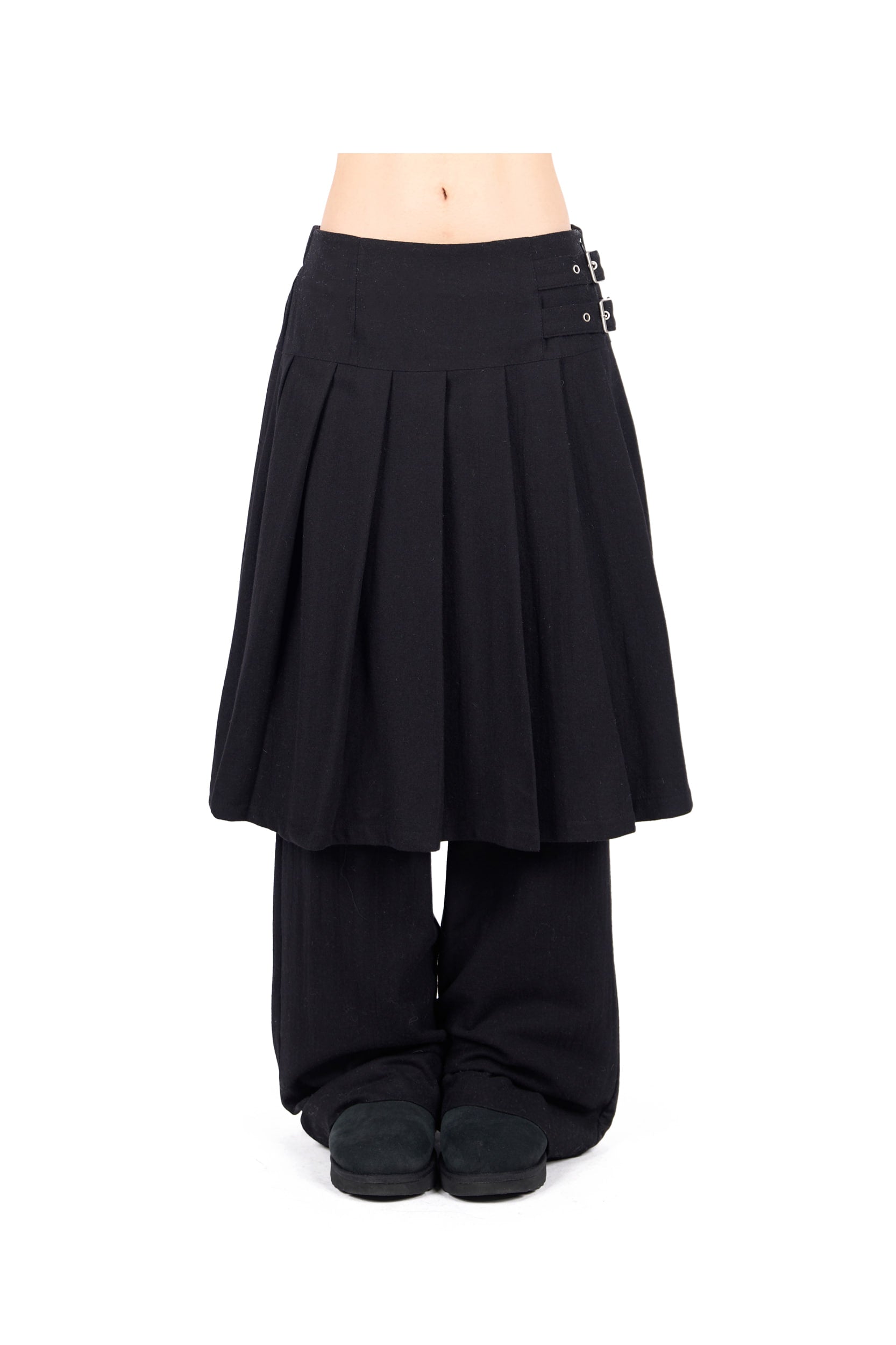 WOOL BUCKLE PLEATS SKIRT PANTS