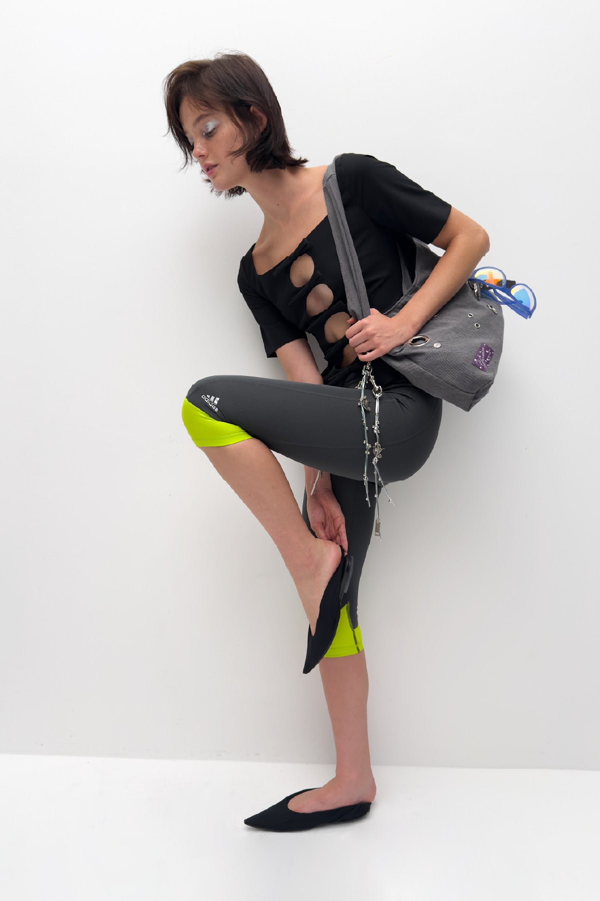 - 不規則排列的金屬孔眼設計,搭配品牌標誌性扣環,細節吸睛